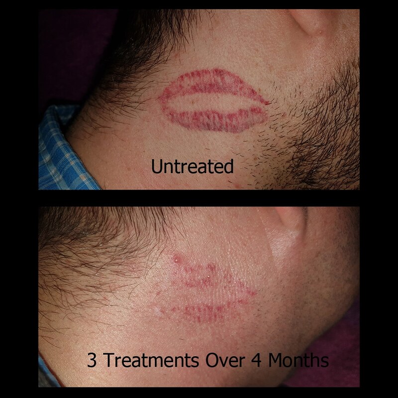 Using a Picosecond ND-YAG Q-switched laser, which is currently considered the safest and most effective methods to lighten or remove tattoos without scarring, we can now offer you the option to remove tattoos, or lighten them for a cover up. Send a text to our WhatsApp on 083 411 1821 or drop us a mail for more information. Remember to include your name, a photo of your tattoo and the hight and widgth of your tattoo (in centimetres). |